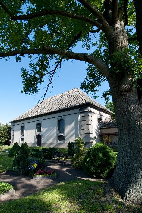 Der quadratische Anbau mit Satteldach an der Ostseite wurde der Kirche im Jahre 1888 angefügt. Einst diente dieser Anbau als Sakristei. Heute wird er als Leichenhalle genutzt.